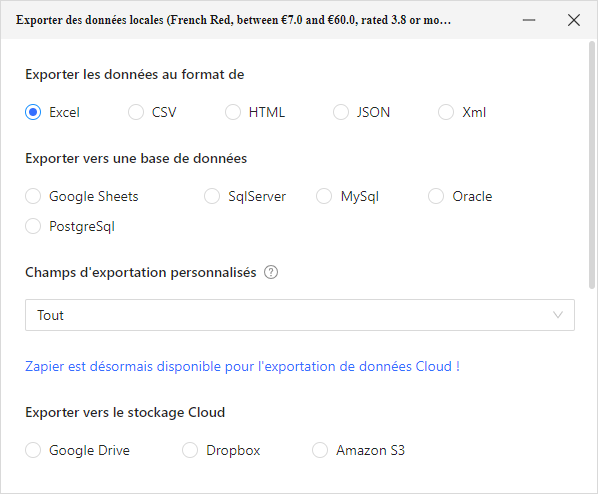 Transformer les sites web vers Excel, CSV, Google Sheets ou base de données.